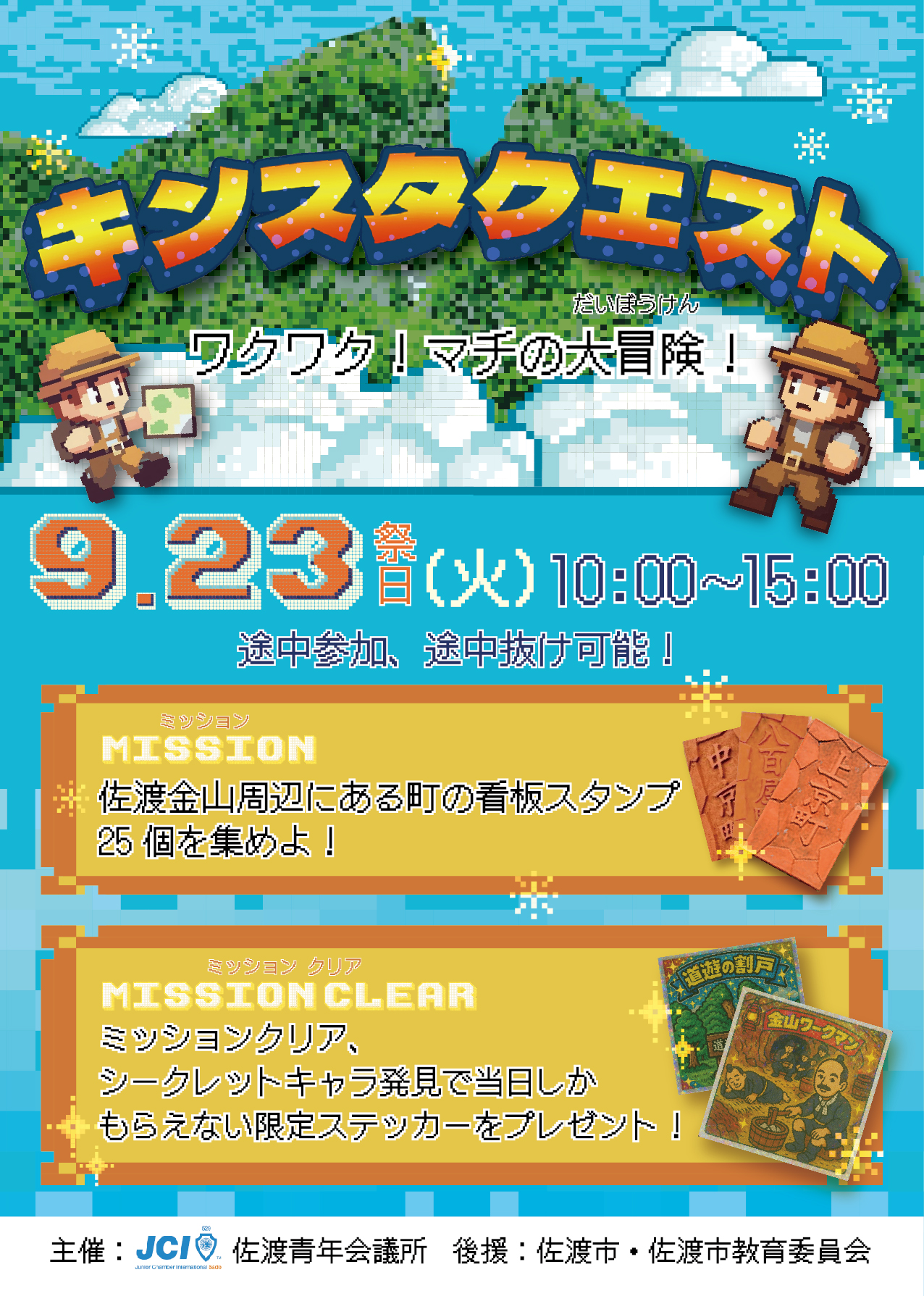 - TEL:080-4730-3873Email:yonter18@yahoo.co.jp(佐渡青年会議所 原田)