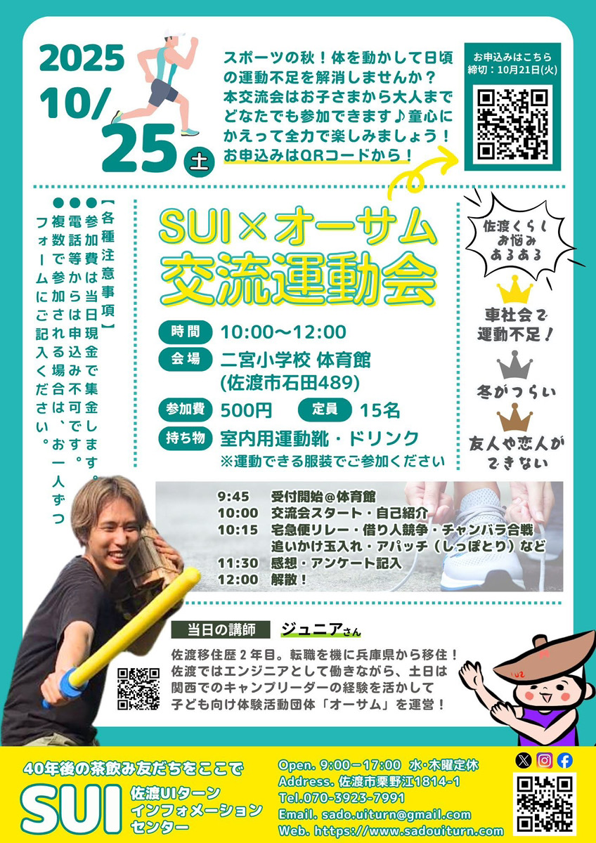 - TEL:070-3923-7991Email:sado.uiturn@gmail.com(佐渡UIターンインフォメーションセンター)