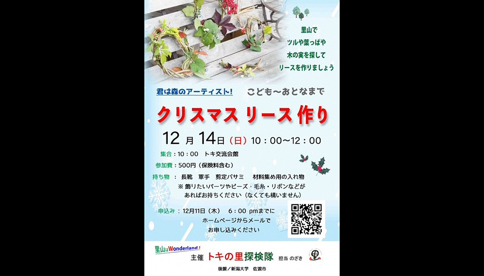 一覧へ戻るクリスマスリース作り【トキの里探検隊】